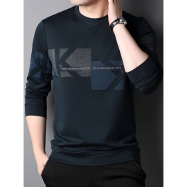 Color Block Trendy Sweatshirt, Men's Casual Graphic Design Slightly Stretch Crew Neck Pullover Sweatshirt For Autumn Winter