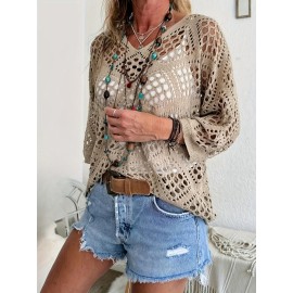 Plus Size Solid Cut Out Knitted Top, Casual Crew Neck Sleeveless Top, Women's Plus Size Clothing